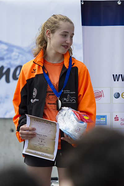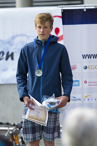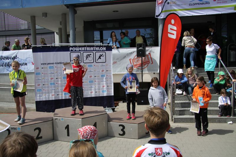 Eine kleine Gruppe von Nachwuchssportlern unseres Vereins fand sich zum 21. Powetriathlon in Gera ein. Eine Veranstaltung, die für knapp 800 Athleten organisiert wird, bringt auch eine entsprechende Konkurrenzsituation mit sich. Davon ließ sich Simon Helgert in der AK Schüler – C nicht abschrecken, als einziger unseres Vereins dabei zu sein. Nach 100m Schwimmen enstieg er dem Wasser und konnte eine sehr kurze Wechselzeit zur Disziplin Radfahren vorweisen. Mit der 5. schnellsten Laufzeit unter 22 Konkurrenten sicherte er sich am Ende den 17. Rang. Mit Franz Seifert in der AK Schüler – B konnte sich ein starker Schwimmer platzieren. Mit einem fulminanten Zielsprint sicherte er sich von Rang 13 bei 37 Konkurrenten; die Motivation stimmt also! Die Mädchen des Verein standen den Jungs aber in nichts nach. Franka Seidel zeigte mit einem hervorragenden Schwimmauftakt in der AK Schülerinnen – A, dass für eine gute Platzierung entsprechende Grundlagen vorhanden sind. Mit der 2. schnellsten Schwimmzeit konnte sich zum Rad wechseln, am Ende erreichte Franka einen tollen 9. Platz. Wenige Sekunden dahinter platzierte sich Theresa Hölzer auf Rang 10, wobei sie wiederum wie zum SWIM&RUN in Weimar ihre starke Laufleistung einbringen konnte. Cara-Antonia Junge erlebte eine zweite Premiere in diesem Jahr, ihr allererster Triathlon in der AK Schülerinnen – B stand bevor. Sie konnte sich am Ende mit einer Finsihermedaille über ihren 13. Platz von 26 Konkurrentinnen entsprechend freuen. Als dynamisches Duo ließen sich Anna Burtscher und Linneá Fröber in der AK Schülerinnen – C wahrnehmen, beide trennten am Ende im Ergebnis nur zwei Platzierungen. Beide bleiben bei 100m schwimmen unter 3min, und auch auf dem Rad fuhren beide ein beherztes Rennen. Anna mit dem MTB und Linneá mit dem Rennrad. Schlussendlich finishte Anna auf Rang 6 und Linneá auf Rang 8. In der Jugend B belegte Theo Sonnenberg einen hervorragenden 2. Platz mit schnellstem Laufsplit, lediglich 14 Sekunden fehlten zum Spitzenreiter. In der Kategorie Jugend A gab es mit Johannes Helgert auf dem Silber- und Philipp Leiteritz auf dem Bronzerang ebenfalls Podestplätze zu feiern. Ebenfalls auf dem Treppchen landete Rebecca Scriba mit einem tollen 2. Platz und schnellster Laufzeit in der Jugend B weiblich.